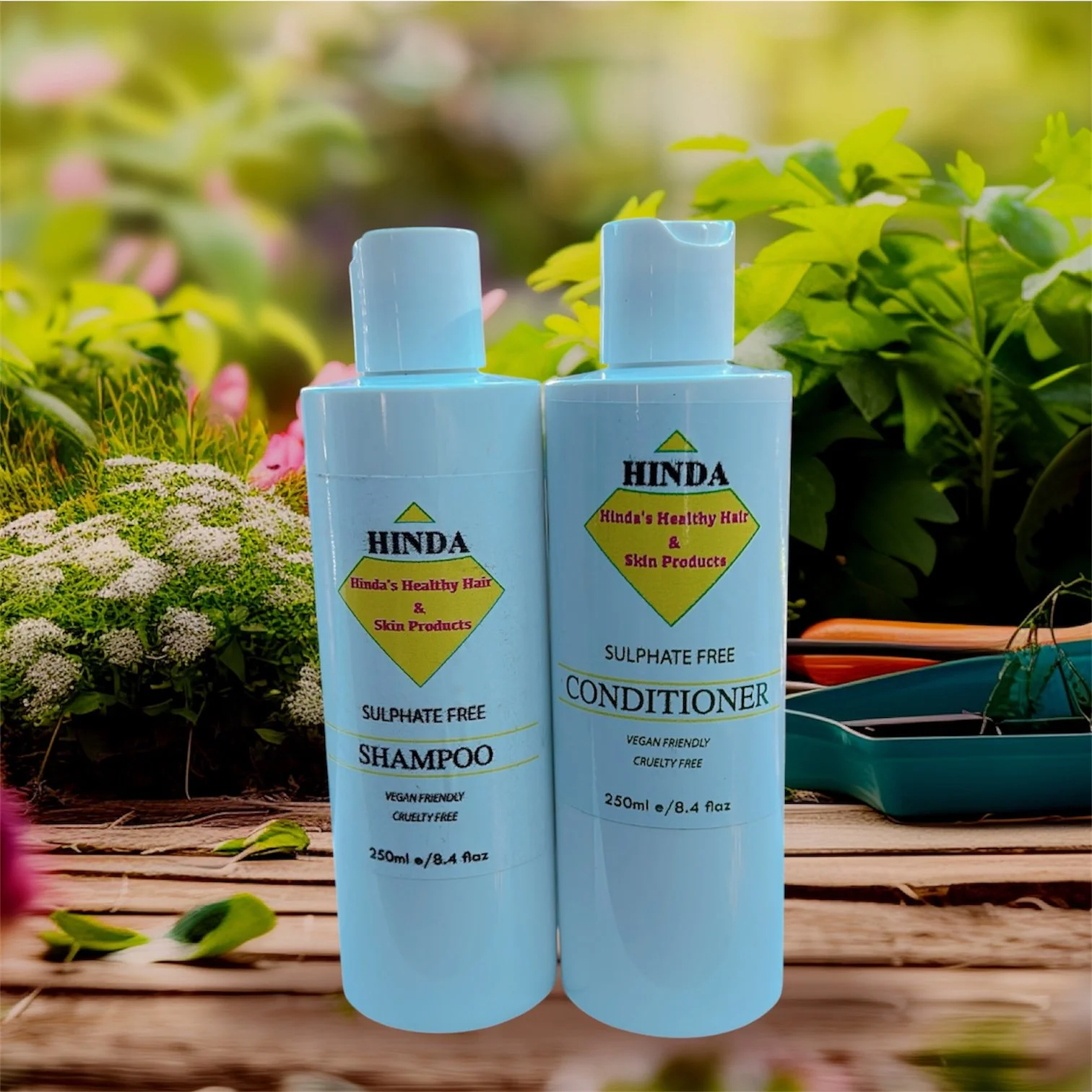 Hinda Shampoo and Conditioner feature a gentle blend of natural ingredients designed to nourish and revitalize your hair. With Aqua (Water) as the base, our formula includes Cocamidopropyl Betaine and Sodium Cocoyl Isethionate for a rich lather without harsh chemicals. Aloe Vera Leaf Juice soothes and hydrates the scalp, while Argan Oil delivers essential nutrients for soft, shiny hair. Infused with Lavender and Geranium Oils, our products provide a calming aroma and promote overall scalp health. Free from sulfates and cruelty, Hinda Shampoo and Conditioner offer a luxurious hair care experience that's kind to you and the planet.